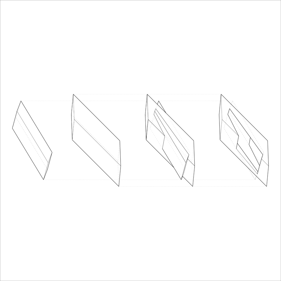 A foundation building exercise in generating inhabitable space through three dimensional geometric transformation, which was generated from the spatial concepts extracted out of two dimensional, abstract “vector field” drawings.